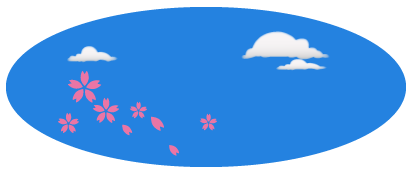 ①ライブラリに登録されている画像を選択して、青空の背景の上に、ドラッグ&ドロップするだけで、桜が描けます。ひとつ貼り付けたら、その画像をコピー(Altキー)を押しながら、好きな場所にペーストするだけです。縮小・拡大して、自分流に作成できます。