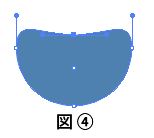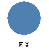 ②正円の図形が選択された状態で、ツールパネルのダイレクト選択ツールを選択して、正円の上部中心部分を選択すると、ハンドルが表示されるので、上部中心のアンカーポイントを選択して、下の方へ移動させる。(図①)(図②)
