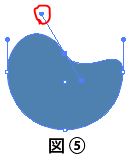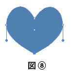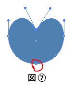 ④ツールパネルのアンカーポイントツールを選択して、右側のハンドルを右上部へドラッグすると右側のハート部分が作成される。(図⑤)(図⑥)