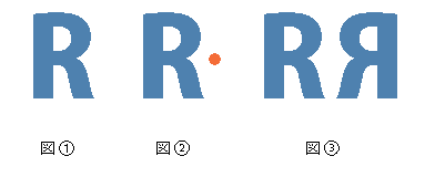 ③」リフレクトダイアログボックスが表示されるので、垂直へチェックを入れ角度を90°に設定してコピーボタンをクリックすると右側に反転したRの文字が作成される。
