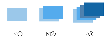 ④それぞれの図形を選択して、各色を設定、線を無しにすれば、移動ツールを使用した図形が作成されます。(図③)